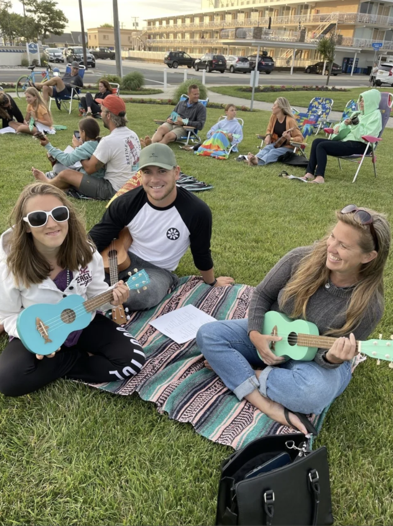 For the past three years, every Friday during the summer, 15-year-old Zoe Herishen teaches a free ukulele class at Sunrise Park on Rambler Road. This weekly event is sponsored by Ocean Outfitters Surf Shop. The surf shop provides ukuleles to borrow for those attending the class who do not own their own instrument.