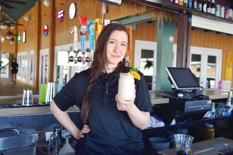 This week’s bartender of the week is Dre Minerva-Okamoto at Urie’s Waterfront Restaurant. This is Dre’s first year at Urie’s, but you wouldn’t know it – her confidence and charm spilled over during her interview with Do the Shore.
