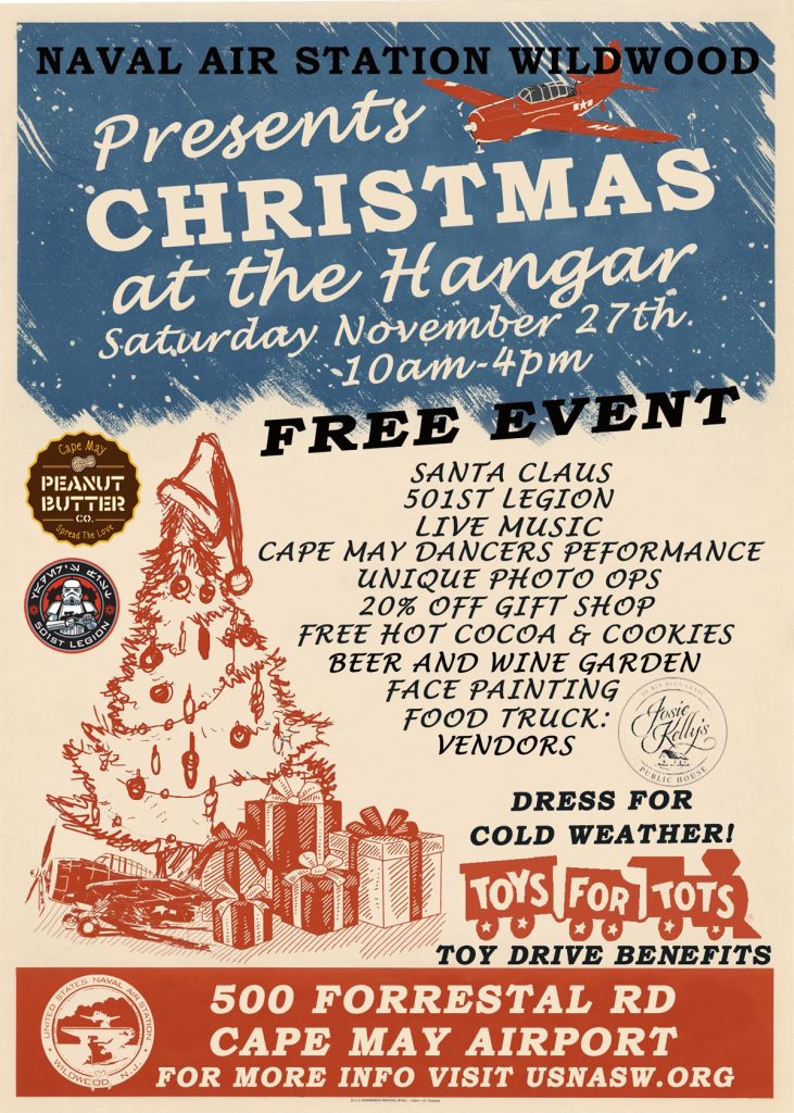 LOWER TOWNSHIP – Naval Air Station Wildwood presents “Christmas at the Hangar,” a free event, with an appearance from Santa, live music, dance performances, hot chocolate and cookies, face painting, and a beer and wine garden.