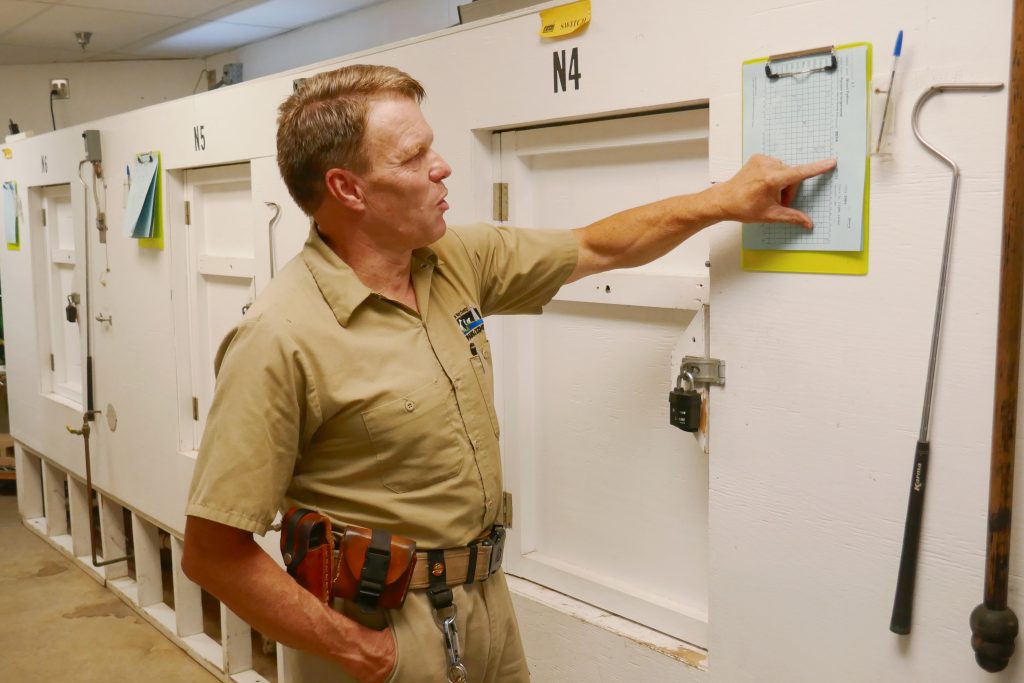 As Wilson walked around the reptile enclosures, he called certain animals – like Ike – by name and engaged in friendly banter with many of them.