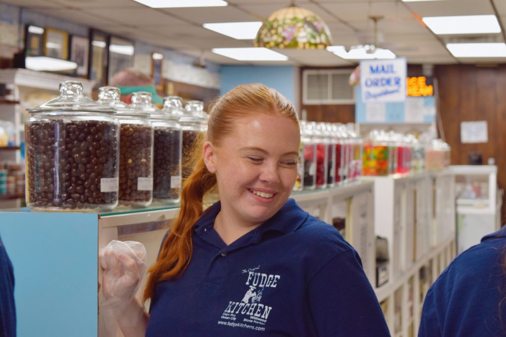 Many people have made careers at The Fudge Kitchen, and the fudge-making process has remained unchanged since Bo and Barney Bogle founded the Fudge Kitchen over 50 years ago. My two favorite flavors are cookies and cream and peppermint, a Christmas special.