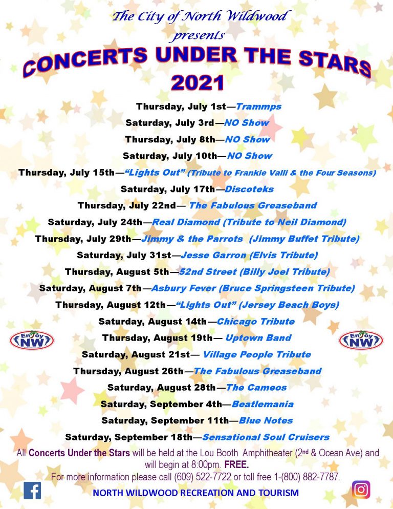 North Wildwood leads the way this year, with the release of its 2021 Concerts Under the Stars series via its Recreation & Tourism page on Facebook.