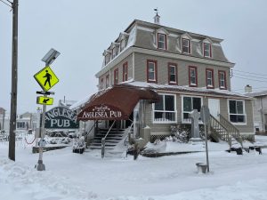 The Anglesea Pub, pictured, is a great place to watch Sunday’s big game. The Pub is pictured covered in snow